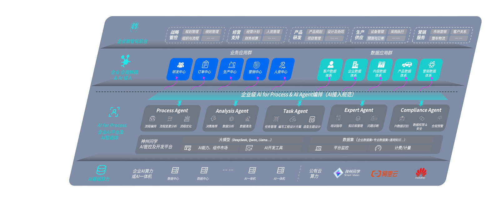 老友会问学智车解决方案是一套基于AI技术的汽车行业智能化系统,,,覆盖从底层算力到顶层AI应用的全栈方案。。方案由算力层、、模型层和应用层组成:算力层,,方案支持多种一体机配置,,,具备云端灵活部署、、多云适配以及动态优化计算资源的能力;模型层,,,老友会问学平台版提供了企业级AI应用一站式构建与管理平台,,,,支持基于后训练强化技术的汽车企业专属模型的训练、、、、评测和运营;应用层,,,老友会问学DeepSeek版提供包括超级员工、、、智能招采、、智能营销、、智能客服、、AI for BI等一系列解决方案,,,可助力汽车行业实现数字化转型,,,让管理更智能、、、、响应更敏捷。。。